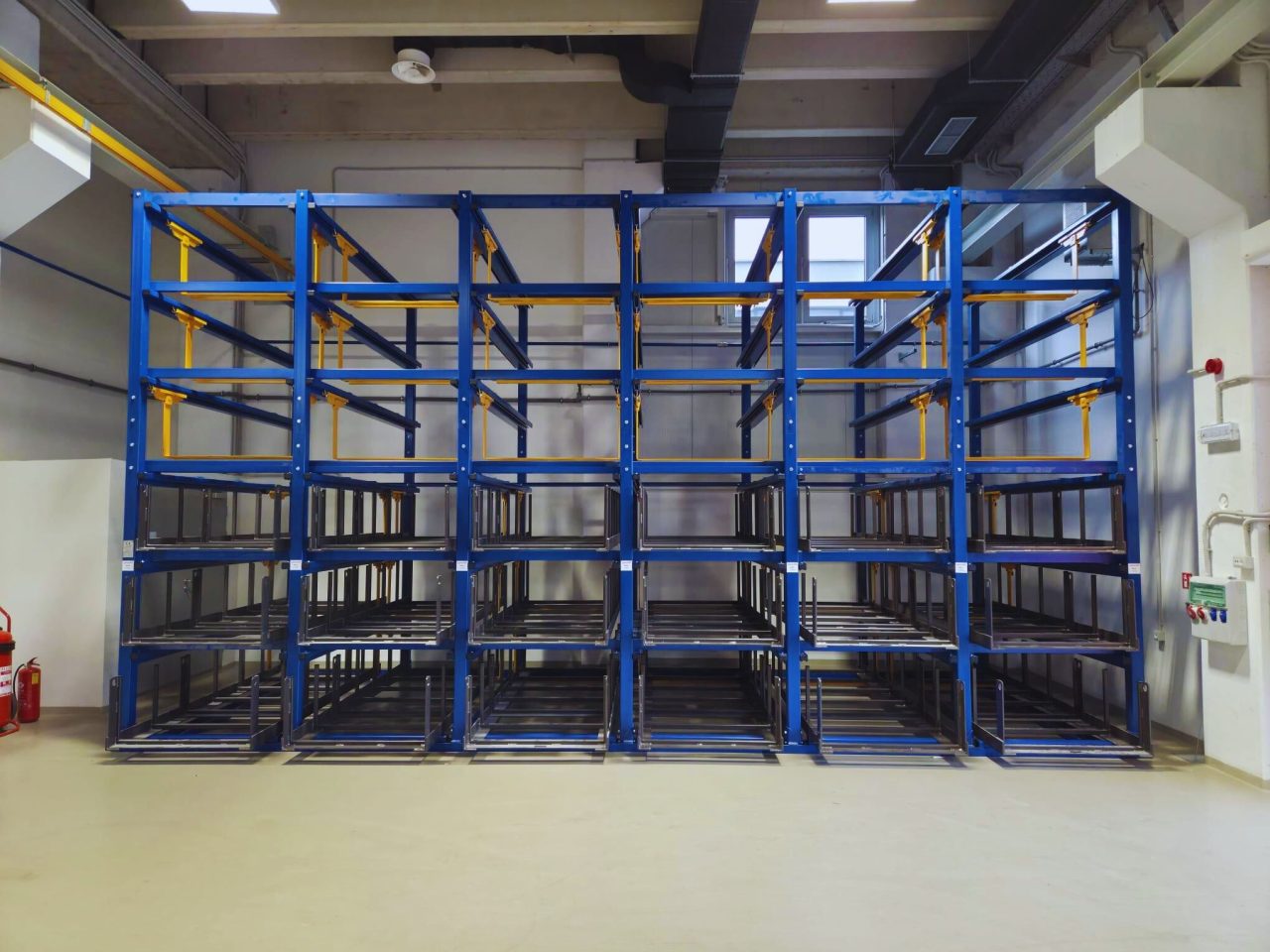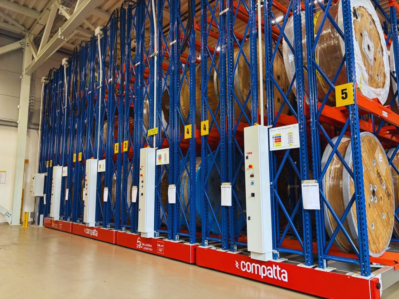 Prvi projekt odnosio se na sustav mobilnih regala za pohranu koluta bakrenog materijala – materijala koji nije samo osjetljiv po pitanju pravilnog skladištenja, već je i iznimno težak. Pojedina skladišna jedinica može doseći masu od čak pet tona, što odmah eliminira većinu standardnih rješenja s tržišta.
